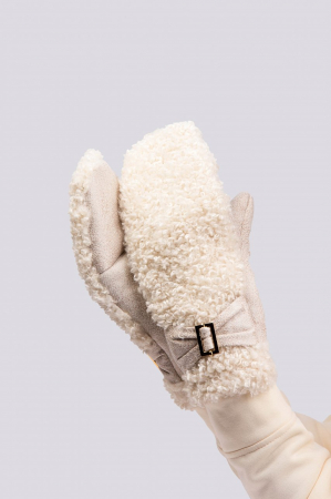 Варежки женские из искусственного меха. Скомбинированы из двух фактур. По верху варежки декорированы отделкой в виде банта. Состав: 65% полиэстер, 35% вискоза. Температурный режим до -25.