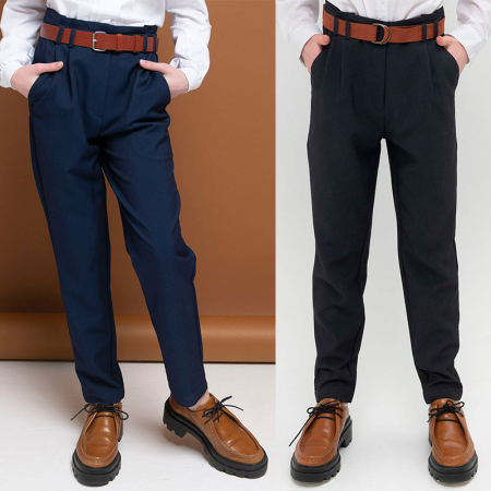 Состав: 52%вискоза 44%полиэстер 4%эластанОписание: Брюки умеренного объема из костюмной ткани для девочки. Ткань легкая и прочная, почти не мнется. Брюки комфортно носить, за ними легко и просто ухаживать. Пояс декорирован элементом со складками, имеет шлевки под ремень и внутренний эластичный шнур на пуговицах для регулировки объема. Молния надежно скрыта гульфиком. Карманы имеют комфортный вход для рук, их удобно использовать по прямому назначению. Брюки идеальны для создания школьного образа на каждый день и торжественных случаев.