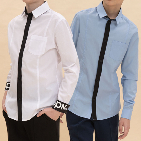 Состав: 60%хлопок 40%полиэстерОписание: Школьная рубашка для мальчика из практичной ткани с современными деталями. Самые уязвимые для грязи детали выполнены из ткани контрастного цвета. Это разбавляет официальный стиль и позволяет не стирать белую рубашку каждый день. А если отвернуть манжеты, то внутренний текстовый принт НОРМ на них превратит рубашку в модную крутую модель. Материал рубашки практичен, его легко стирать и гладить. Хорошо держит форму и даёт телу дышать. Не ограничивает движения и переживёт любую активность подростка.