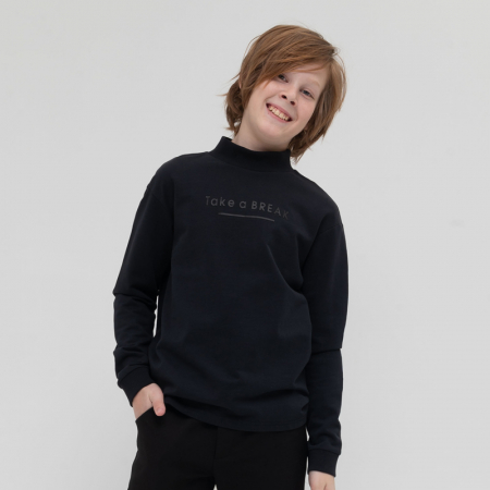 Состав: 100%хлопокОписание: Школьный свитшот для мальчика из хлопкового футера. Материал почти не мнётся, не электризуется, отлично впитывает влагу. Мягкий и простой в уходе. Свободный силуэт, спущенное плечо. Воротник стойка хорошо держит форму. Выпуклый резиновый принт Тake a break на груди переводится как Возьми паузу. Легко комбинируется с брюками, джинсами и шортами. Современный образ и практичность то, что нужно любому юноше. Не удивляйтесь, что он не захочет её снимать.