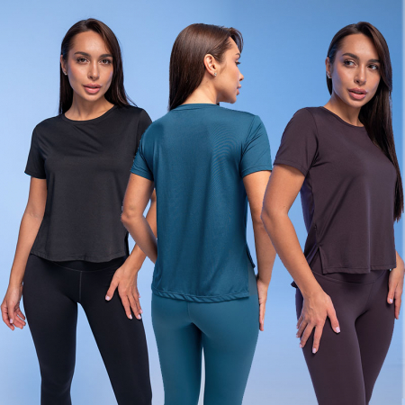 Состав: 90%полиэстер 10%эластанОписание: Спортивная женская футболка из эластичной ткани. Майка прямого силуэта с короткими рукавами выполнена из материала с обработкой Dri fit – ваша кожа остаётся сухой, и вы чувствуете себя комфортно во время тренировки. Женская спортивная футболка для фитнеса и йоги сделает тренировки легкими, движения свободными, а занятия спортом в радость. Спинка изделия немного длиннее переда, по бокам удобные разрезы. Комфортная майка для женщин подходит для тренировок и для занятий в тренажерном зале, пилатеса, для бега, для йоги и фитнеса, занятий танцами и прогулок. Футболка однотонная, без принта, неприхотлива в уходе. В составе ткани полиамид и эластан – топ легко стирается и быстро сохнет, надолго сохраняет первоначальные форму и цвет. Спортивная одежда для девушек прочно вошла в современные образы, стирая грань между повседневной и одеждой спортивного стиля. Модная футболка – это не просто одежда для фитнеса, это базовая вещь в женском гардеробе. Подходит женщинам и девушкам, а также это отличная футболка для девочек-подростков. В линейке представлены следующие размеры: XS (42), S (44), M (46), L (48), XL (50). Майку можно надевать под пиджак, под рубашку, в качестве первого слоя под одежду. Модель представлена в трёх цветах: синяя футболка, фиолетовая и чёрная. Она отлично сочетается с джинсами, спортивными легинсами, велосипедками. Идеальная футболка для спорта. Прекрасный подарок маме, сестре или подруге на любой праздник. Выбирайте нужный размер по таблице размеров на фото. Цвет товара на экране вашего устройства может отличаться от цвета изделия вживую.