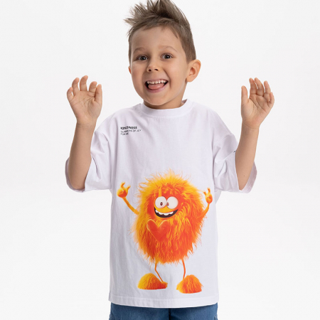 Состав: 100%хлопокОписание: Детская футболка унисекс среднего объема. Прикольная нарядная футболка свободного силуэта со спущенным плечом не будет стеснять движений ребёнка. Вырез горловины отделан эластичной рибаной - голова не застрянет. Главная фишка футболки — яркий милый принт, изображающий персонажа, сгенерированного нейросетью (искусственным интеллектом). Это супермодный тренд! Принт эластичный и стойкий — без проблем переносит многочисленные стирки, не теряя своей яркости. На принте изображён забавный пушистый чудик (монстрик) оранжевого цвета + надписи "доброта", "искры радости для меня" и "создано с помощью искусственного интеллекта". Широкая размерная сетка позволяет приобрести такую футболку как малышу в детский садик так и подростку. . Белые футболки подходят для носки летом, осенью и весной (демисезон), а также зимой . Цвет товара на экране вашего устройства может отличаться от цвета изделия вживую.