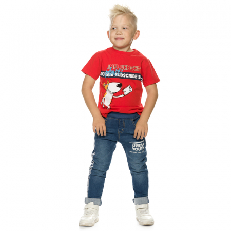 Состав: 65%хлопок 33%полиэстер 2%эластанОписание: Джинсы для мальчиков с начёсом и 5-ю карманами, небольшого объёма, зауженные книзу, пояс из рибаны с внутренней регулировкой ширины, по боковому шву лампас из репсовой тесьмы с надписью Подписывайся играть в игры, локальный принт с надписью Бери от жизни всё!