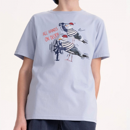 Состав: 100%хлопокОписание: Футболка для мальчика прямого кроя - это идеальный выбор для активного ребенка. Вырез горловины обработан эластичной тканью — она прекрасно держит форму, не растягивается, при этом ребёнку удобно надевать и снимать футболку. Футболка украшена принтом в морском стиле и надписями. Перевод надписей "All hands on deck!!!" - все на палубу!!! Спортивная футболка подходит как для подростков так и для малышей в детский сад. Подходит для любого времени года.