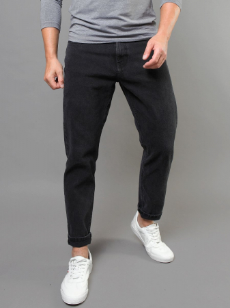 Мужские ретро джинсы с пятью карманами с использованием лучших традиций 90-х. Посадка Dad fit (Папины джинсы), высокая талия спереди и сзади, свободные в бедре и зауженные к низу укороченной длины. Застежка на молнии. Выполнены из слабоэластичной ткани denim comfort stretch, цвет ткани Black/Black (лицевая и изнаночная стороны ткани черные).Темная стирка с потёртостями только по швам.