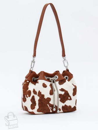 Эффектная модель, выполнена из меха пони. Дополнена серебристой фурнитурой. Данная модель закрывается на кулиску, носится в руке за съемную ручки. Или на плече, в комплекте имеется ремень с регулировкой длины. Каркас полужесткий.