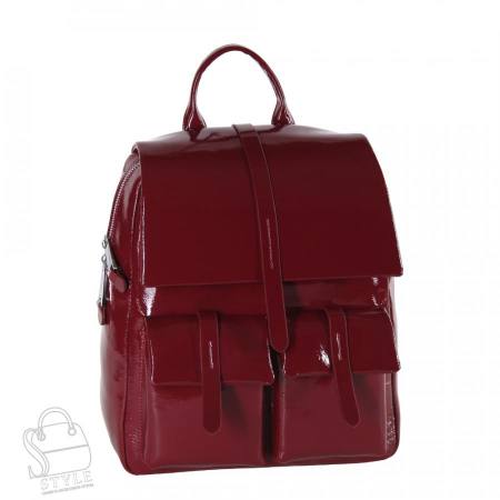 Классическая модель рюкзака, выполнен из натуральной лаковой кожи. Дополнен серебристой фурнитурой. Данная модель закрывается на клапан, носится на плече или в руке. Встроенные ремни регулируются по длине. Так же имеется ручка. Каркас полужесткий.