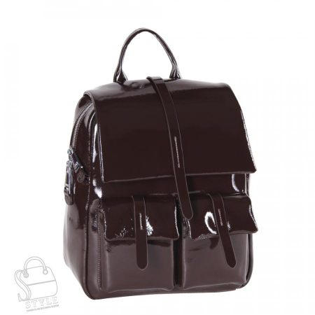 Классическая модель рюкзака, выполнен из натуральной лаковой кожи. Дополнен серебристой фурнитурой. Данная модель закрывается на клапан, носится на плече или в руке. Встроенные ремни регулируются по длине. Так же имеется ручка. Каркас полужесткий.