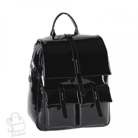 Классическая модель рюкзака, выполнен из натуральной лаковой кожи. Дополнен серебристой фурнитурой. Данная модель закрывается на клапан, носится на плече или в руке. Встроенные ремни регулируются по длине. Так же имеется ручка. Каркас полужесткий.