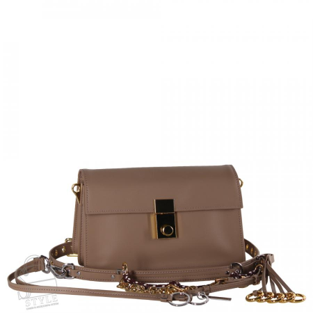 Эффектная модель, выполнена из натуральной кожи. Декорирована брелоками на ремне. Дополнена золотистой фурнитурой. Данная модель закрывается на клапан. Каркас полужёсткий. Носится на плече за встроенный ремень с регулировкой длины.