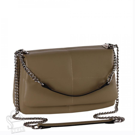 Сумка-мессенджер, выполнена из натуральной кожи. Декорирована стежкой на корпусе. Дополнена серебристой фурнитурой. Данная модель закрывается на клапан. Каркас полужесткий. Носится в руке или на плече. Встроенная цепочка с кожаными вставками перетягивается.