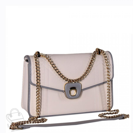 Элегантная сумка на цепочке, выполнена из экокожи. Декорирована контрастными деталями. Дополнена золотистой фурнитурой. Данная модель закрывается на клапан. Каркас жесткий. Носится в руке или на плече. Встроенная цепочка перетягивается.