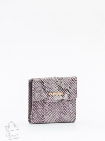 Компактный кошелек складывается пополам, выполнен из замши лазерной обработки. Дополнен золотистой фурнитурой. Закрывается на кнопку.