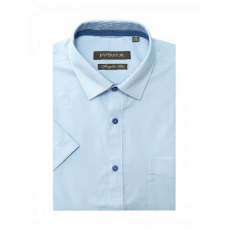 Модель прямого силуэта с накладным нагрудным карманом, комбинированная контрастной тканью по внутренним вороту и манжетам. Цвет голубой. Короткий рукав. Товар соответствует техническому регламенту о безопасности продукции легкой промышленности.