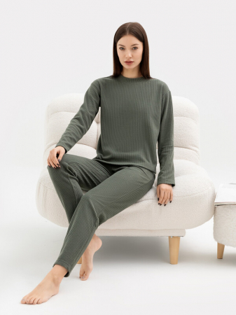 Джемпер женский свободного силуэта. Горловина круглой формы с обтачкой из основного полотна. Рукав спущенный. Рукава и низ джемпера обработаны швом в подгибку.