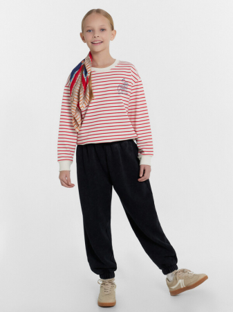 Универсальные брюки детские из высококачественного хлопка. Выполнены брюки для девочки из легкого трикотажного футера. Посадка на талии средняя. Пояс – с мягкой эластичной тесьмой внутри и декоративными строчками. Боковые швы немного смещены вперед. Низ брюк завершается эластичной тесьмой. Мягкий, эластичный, хлопковый материал комфортен в носке и не стесняет движений. Такие брюки детские отлично подойдут для активных игр, а также в школу, сад и на прогулку. Брюки для девочек представлены в интересных пастельных цветах, есть варианты с принтами. Если вы в поиске стильной и и универсальной базовой вещи для ребенка, эта модель отличный вариант. Купить брюки для девочек недорого можно у нас нас на сайте и в магазинах Mark Formelle. Широкий выбор одежды для детей и подростков на каждый день и для занятий спортом!