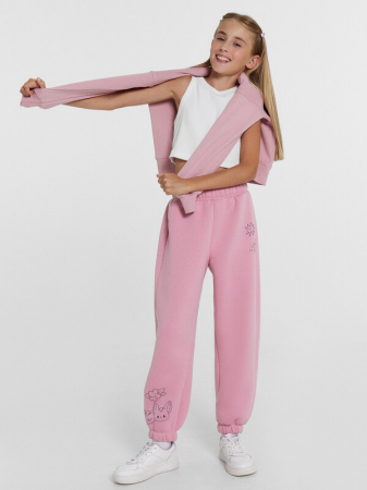 Брюки из легкого трикотажного футера. Посадка на талии средняя. Пояс – с мягкой эластичной тесьмой внутри и декоративными строчками. Боковые швы немного смещены вперед. Штанины завершаются эластичной тесьмой. Красиво и комфортно!