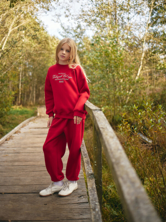 Брюки из легкого трикотажного футера. Посадка на талии средняя. Пояс – с мягкой эластичной тесьмой внутри и декоративными строчками. Боковые швы немного смещены вперед. Штанины завершаются эластичной тесьмой. Красиво и комфортно!