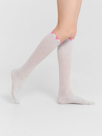 Рис.3212 Детские однотонные гольфы выполненные перекидным переплетением (лапша)  5:1 и пикотом на бортике в виде сердечек.