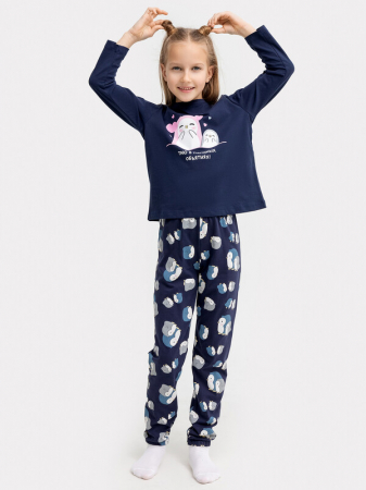 Уютный комплект для девочек состоит из джемпера и брюк. Горловина круглой формы из основного полотна. Рукава длинные втачные. Перед и спинка цельнокроеные. Брюки длинные, немного заужены к низу. Пояс цельнокроенный с эластичной тесьмой внутри. Низ брюк с эластичной тесьмой внутри. Стильная и комфортная детская пижама — отличный вариант для прохладного времени года. Широкий размерный ряд, красивые расцветки моделей в линейке. Рекомендуем!