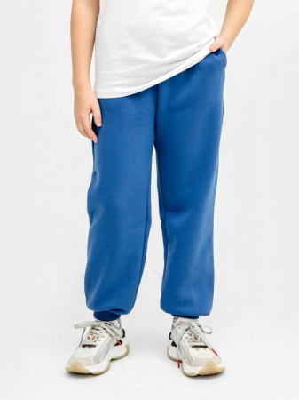Модные брюки-джоггеры прямого силуэта для мальчиков. Выполнены из трикотажного футера с теплым и нежным подчесом. Пояс с эластичной тесьмой внутри и регулировочным шнуром-завязкой. Штанины завершаются манжетами. Есть удобные боковые карманы.