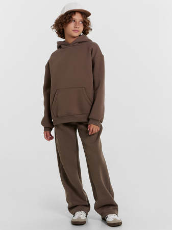 Брюки для мальчиков, прямого силуэта. Пояс цельнокройный с втачной эластичной тесьсьмой. Пояс прострочен двумя отделочными строчками. По переду обработаны карманы в швах. Низ брюк обработан швом в подгибку на двухигольной плоскошовной машине.