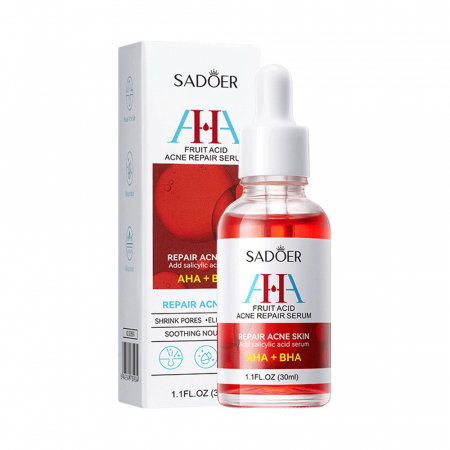 Сыворотка SADOER – спасение для проблемной кожи. Фруктовые кислоты и салициловая кислота эффективно работают вместе. Они проникают глубоко в кожу, питая и восстанавливая ее. Сыворотка контролирует выработку кожного сала. Это помогает уменьшить жирный блеск. Она также борется с угрями и черными точками. Загрязнения удаляются из пор.
