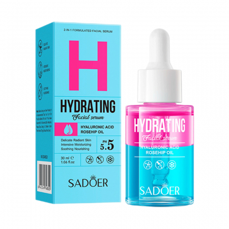SADOER представляет сыворотку с гиалуроновой кислотой и маслом шиповника. Это двухслойная формула для эффективного ухода за кожей. Сыворотка глубоко увлажняет и питает кожу. Гиалуроновая кислота насыщает кожу влагой. Масло шиповника смягчает и восстанавливает.