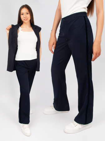 Элегантные, классические брюки для девочки Соль&Перец. Брюки декорированы бархатными лентами по бокам, в пояс вшита резинка. Брюки гармонично сочетаются с разнообразными блузками, водолазками и джемперами.