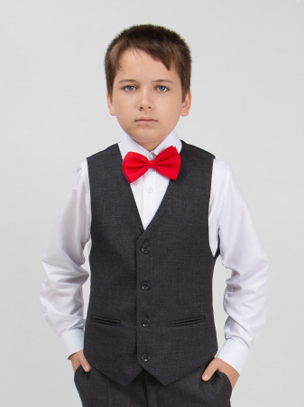 Классический жилет с центральной бортовой застежкой на пуговицы. Жилет на подкладке. Полочка и спинка из основной ткани. На полочке боковой карман-обманка. На спинке регулируемый хлястик. Прекрасный вариант для создания элегантного школьного образа.