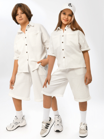 Летний детский костюм Соль&Перец, выполнен из натурального хлопкового вафельного трикотажа. Рубашка свободного кроя с потайными карманами на груди, удлинённые шорты с карманами, по талии на широкой, эластичной резинке. Костюм из хлопковой ткани вафельной текстуры хорошо пропускает воздух, защищает от солнца и подходит для чувствительной кожи. Отличный вариант для летнего отдыха.