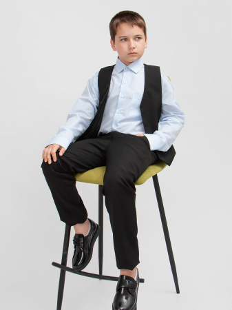 Жилет и брюки выполнены из высококачественной костюмной ткани. Жилет на пуговицах. Низ брючин не подшит.