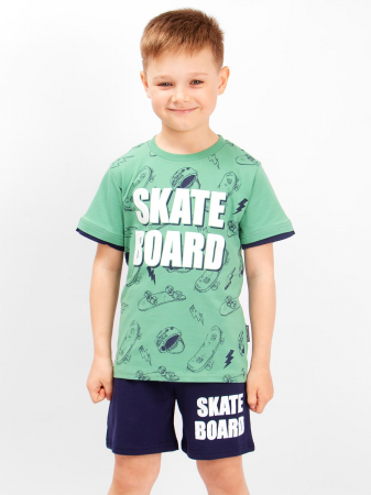 Летний костюм для мальчика. Мягкая поверхность материала из хлопка приятная к телу ребенка. Ткань не доставит забот при стирке, обладает воздухопроницаемыми качествами. У модели достаточно широкая горловина, вещь легко надеть и снять. Такой универсальный костюм идеально вольется в летний гардероб, а яркие расцветки и оригинальные принты понравятся каждому мальчишке.