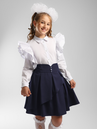Юбка для девочки Соль&Перец выполнена из качественного габардина, который состоит из 80% полиэстера и 20% вискозы. Такая ткань отлично держит форму и устойчива к сминанию, что особенно важно для школьной одежды. Модель оснащена удобным широким поясом-резинкой, который обеспечивает комфортную посадку по фигуре. Юбка украшена воланом и лентами-завязками, выполненными из основной ткани. Это придаёт модели нарядный и женственный вид, при этом сохраняя строгость, необходимую для школьной формы.