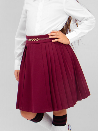 Юбка для девочки Соль&Перец силуэта солнце-клёш, в складку, с декором на поясе. В пояс вшита резинка для регулировки обхвата талии. Износоустойчивый материал позволит надолго сохранить форму и привлекательный внешний вид изделия. Идеальный выбор для создания стильного, школьного образа.