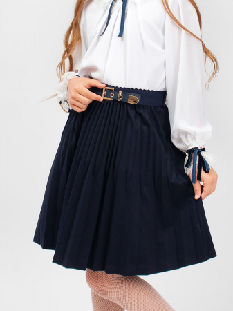 Юбка для девочки Соль&Перец с декором на поясе-резинке. Эффектная юбка-плиссе из плотного трикотажа для девочки. Износоустойчивый материал позволит надолго сохранить форму и привлекательный внешний вид изделия. Идеальный выбор для создания стильного, школьного образа.
