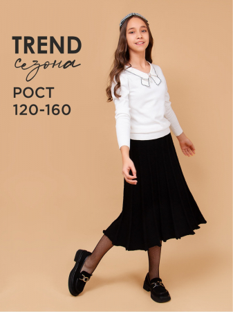 Эффектная юбка из теплого трикотажа для девочки. Износоустойчивый материал позволит надолго сохранить форму и привлекательный внешний вид изделия. Идеальный выбор для создания стильного, школьного образа.