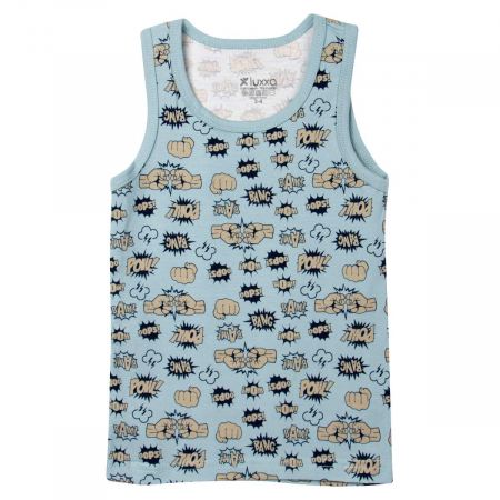 Бельевая майка, с оригинальным принтом, для мальчика. Изделие выполнено из мягкой, гипоаллергенной, ткани кулирка. Прекрасный выбор на каждый день, для дома или школы.