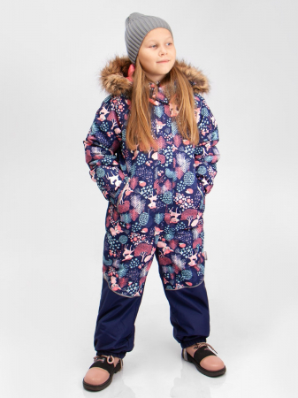Водонепроницаемая мембранная ткань 3000 мм. Безопасное водо-и грязеотталкивающее покрытие. Внутри подкладка из флиса. Капюшон не съёмный, мех отстёгивается. На штанишках манжеты и регулируемые силиконовые штрипки. По бокам прорезные карманы на молнии. Температурный режим от -5С до -30С.