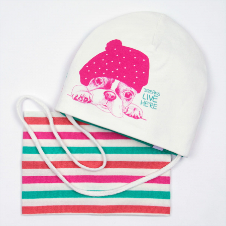 Уютный весенний комплект (шапочка и шарф-снуд) для девочки.
