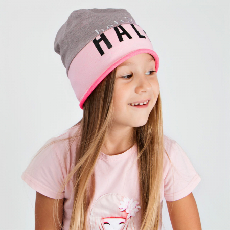 Весенняя шапочка с ярким принтом, и небольшим отворотом для девочки.