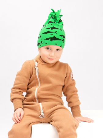 Практичная трикотажная шапочка с интересным принтом. Ткань интерлок - легкая, натуральная, гигроскопичная, гипоаллергенная.