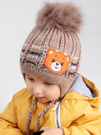 Уютная вязаная шапочка с натуральным помпоном для малыша.