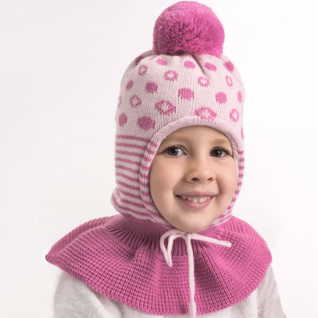 Двойной шлем на холодную весну-осень с небольшой петелькой из светоотражающей ленты на макушке. Верхний слой связан из полушерстяной мериносовой пряжи, подклад подшит из хлопкового полотна. Вырез вокруг лица обработан по специальной технологии, он не вытягивается в процессе носки, уши всегда надежно защищены.