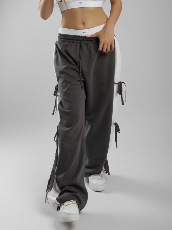 Брюки палаццо женские Соль&Перец в стиле спорт-шик, с лентами по бокам. По талии брюки на широкой, эластичной резинке со шнурком. Низ брючин на кулиске, что позволяет регулировать длину. Брюки выполнены из износостойкой трикотажной ткани Лининг которая долго сохраняет форму и привлекательный внешний вид.