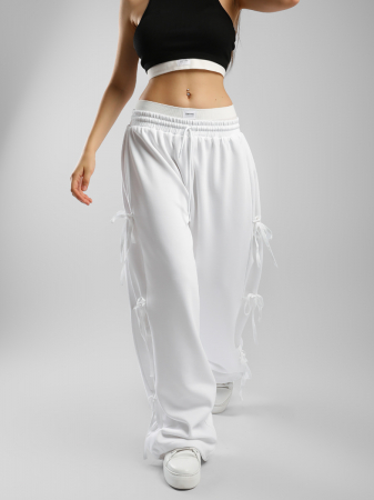 Брюки палаццо женские Соль&Перец в стиле спорт-шик, с лентами по бокам. По талии брюки на широкой, эластичной резинке со шнурком. Низ брючин на кулиске, что позволяет регулировать длину. Брюки выполнены из износостойкой трикотажной ткани Лининг которая долго сохраняет форму и привлекательный внешний вид.