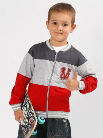 Бомбер для мальчика украшенный оригинальными принтами, с застёжкой на молнии. На рукавах и по низу изделия широкие эластичные манжеты. Материал ткани хлопковое полотно футер. Хорошо пропускает воздух, приятный к телу, не раздражает кожу. Бомбер идеально сочетается с брюками, джинсами. Великолепный выбор для стильного образа на каждый день.