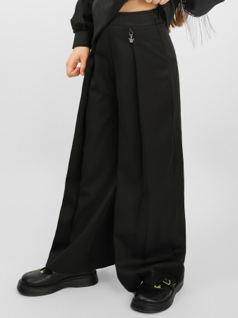 Стильные брюки палаццо для девочки. Пояс сзади на широкой, эластичной резинке, сбоку на молнии. Брюки прекрасно сочетаются с любым верхом, и подойдут для любого мероприятия.