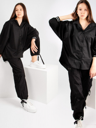 Модель не имеет ни молнии, ни пуговиц, эластичный пояс дополнен кулиской.
