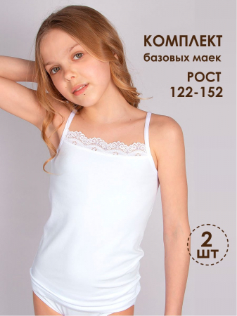 Комплект бельевых маек для девочек. Натуральный материал, не вызывает аллергии и раздражения кожи. Обладает высокими гигроскопичными и воздухопроницаемыми свойствами.